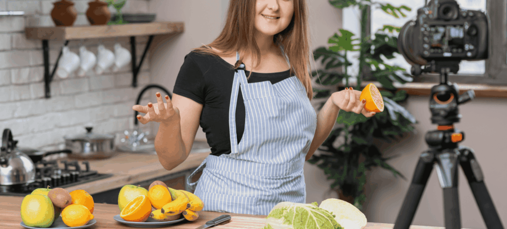 Hosts live food-sharing sessions, interacts with online audiences, and promotes food content on social platforms.